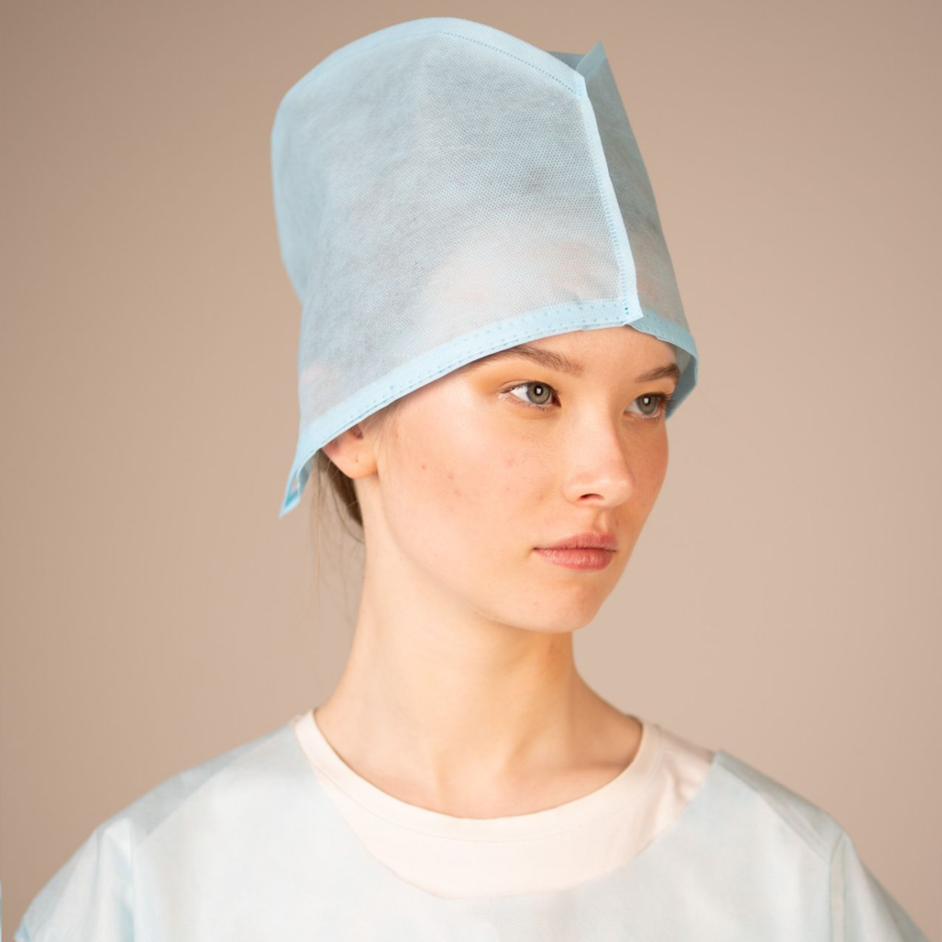 Эта модель представляет собой высокую шапочку с завязками для надежной фиксации на затылке. Завязки обеспечивают комфортную посадку и позволяют регулировать размер, что делает шапочку универсальной и удобной для людей с различной формой головы. Одноразовый берет подходит под любые прически, не нарушая укладки и обеспечивая удобство использования даже для людей с длинными волосами.
