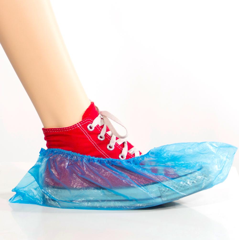 Бахилы гладкие с цельной резинкой, синие. Плотность бахил - 15 микрон. Материал бахил - первичный полиэтилен высокого давления низкой плотности (ПВД/НП). Одноразовые бахилы на ноги ручного изготовления с цельной резинкой из натурального каучука, которая не порвется даже при небрежном растягивании бахил в процессе надевания.