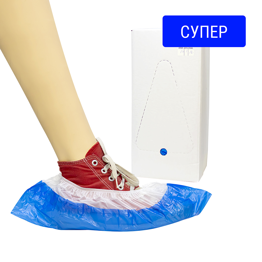Бахилы повышенной прочности гладкие СУПЕР, синий/белый