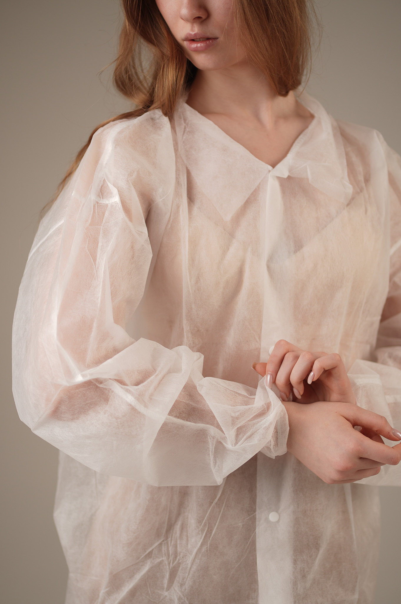 Одноразовые халаты для посетителей, изготовленные из легкого и пропускающего воздух нетканого полипропилена, являются идеальным решением для обеспечения гигиенической безопасности. Эти халаты специально предназначены для предотвращения перекрестного заражения, что особенно важно в медицинских и лабораторных условиях. Они надежно застегиваются спереди на четыре кнопки, вмонтированные непосредственно в ткань без использования клея или термосварки, обеспечивая комфорт и удобство использования.