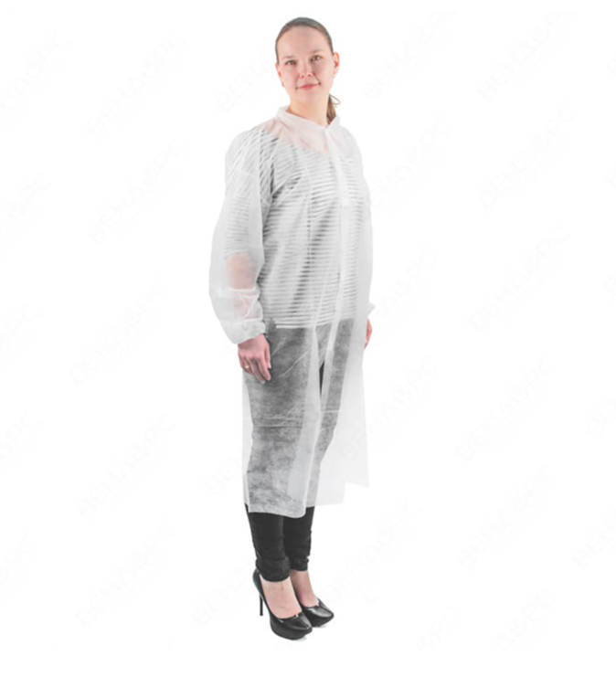 Защитные халаты одноразового использования, предназначенные для посетителей, произведены из легкого и дышащего нетканого полипропилена, что обеспечивает комфортное ношение. Оснащены удобными застежками на липучках и обеспечивают простоту и практичность в использовании. Они закреплены без использования клеящих веществ или сварки.