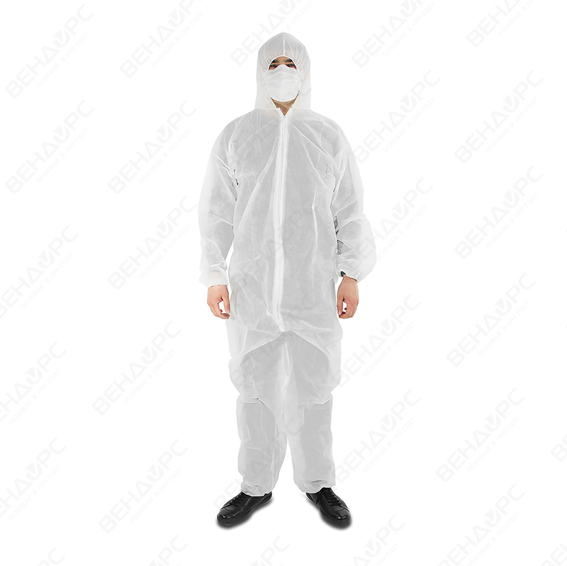 Комбинезон изготовлен из лёгкого и воздухопроницаемого нетканого полипропилена, предназначен для защиты работников в различных промышленных условиях. Материал обеспечивает комфорт и не сковывает движения во время носки. Данный одноразовый медицинский костюм оснащён удобной застёжкой-молнией спереди, что упрощает процесс его надевания и снимания.