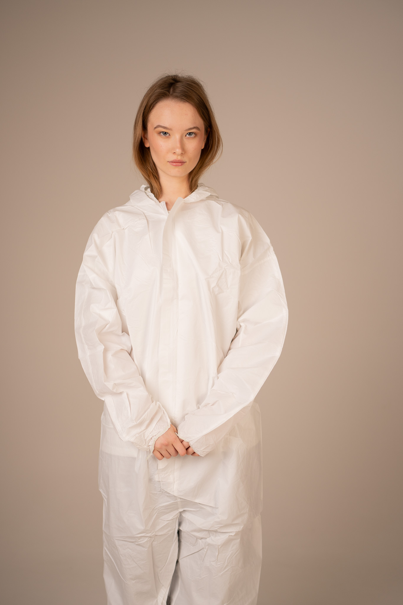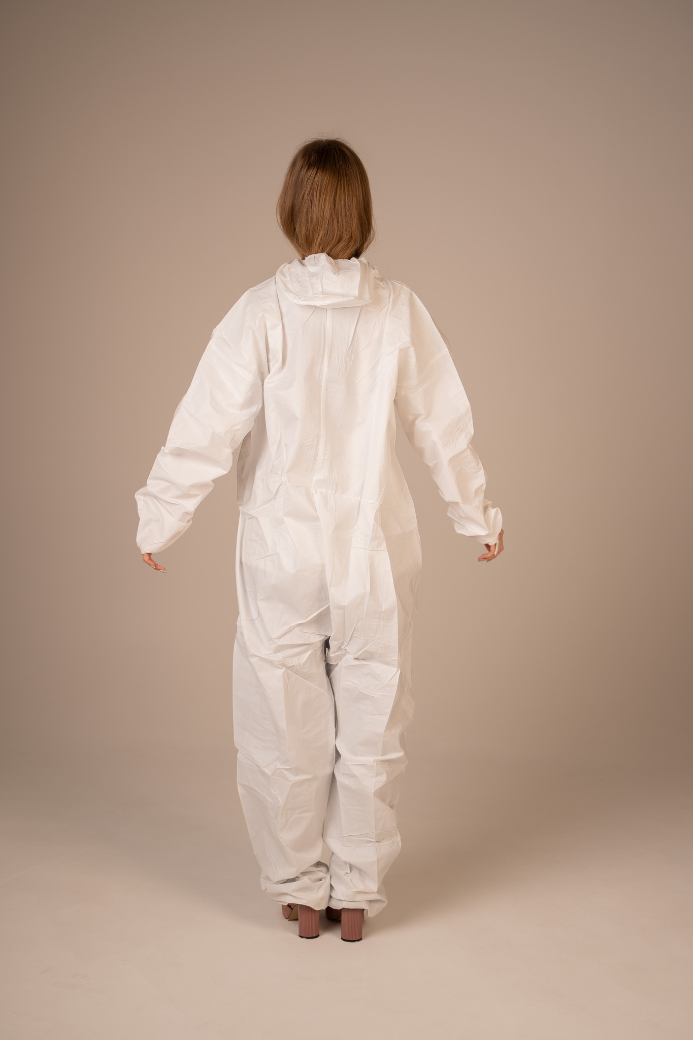 Комбинезон одноразовый из ламинированного микропористого спанбонда, пл. 65