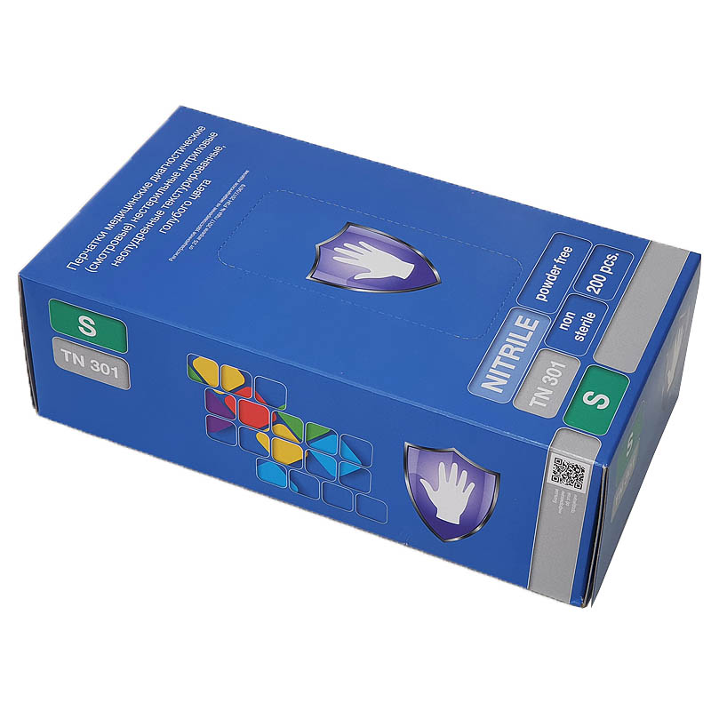 Перчатки медицинские нитриловые, неопудренные, текстурированные на пальцах, цвет: голубой.