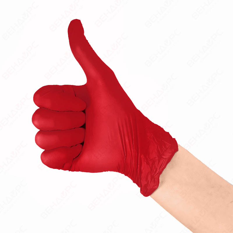 Перчатки нитриловые, неопудренные, текстурированные на пальцах, цвет: красный.