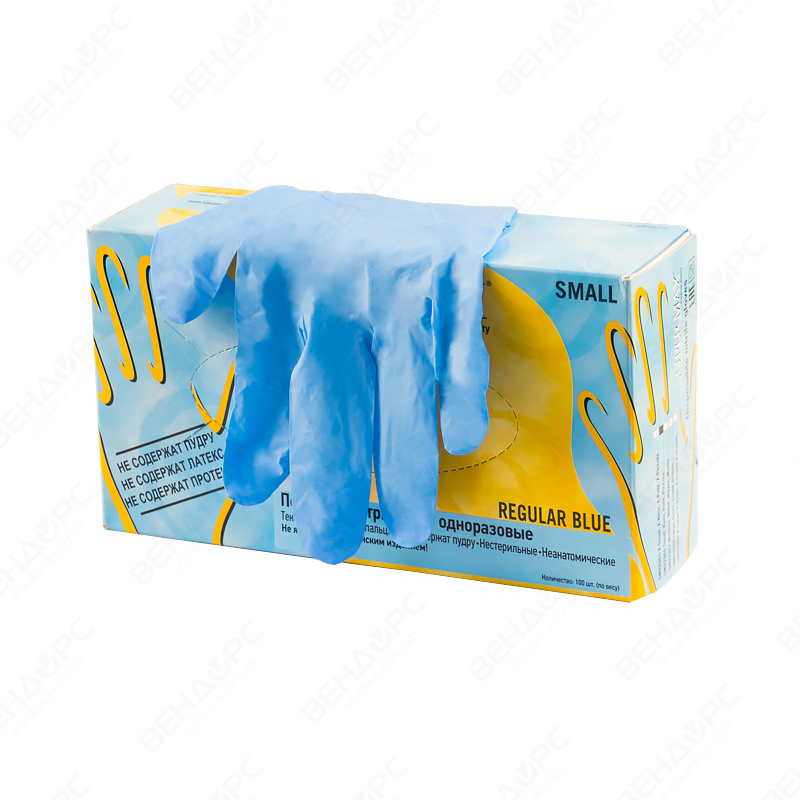Перчатки нитриловые, неопудренные, текстурированные на пальцах, цвет: голубой.