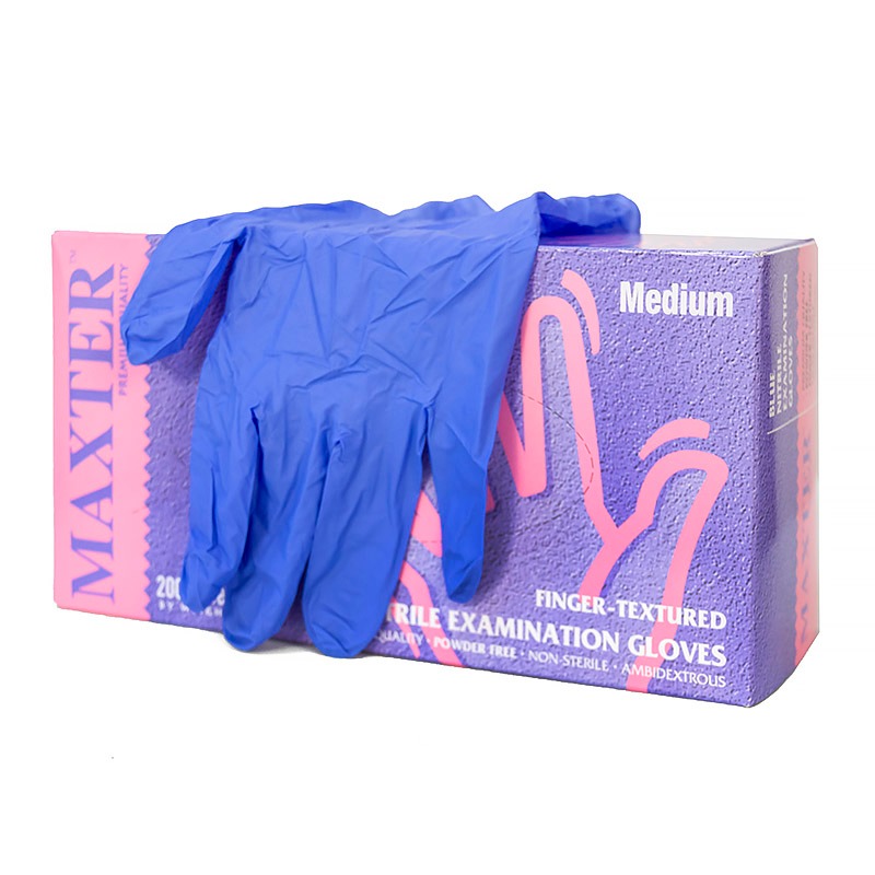 Перчатки из нитрила, неопудренные, текстурированные на пальцах, цвет: синий.
